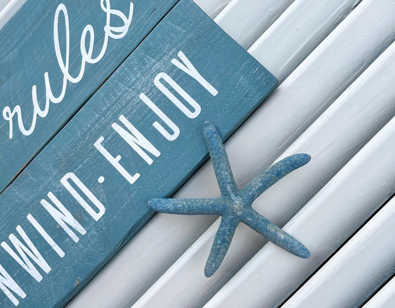 ¿Qué te parece este bonito cartel con diseño playero para decorar la estancia preferida de tu casa, porche o incluso dentro de tu casa con ruedas?
